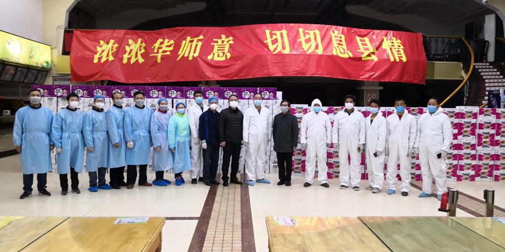 副校长任友洲与息县县委组织部路万运副部长交接物资清单时表示,息县作为“中华第一县”,在2019年5月才达到脱贫摘帽标准、正式退出贫困县序列的情况下,举全县之力,紧急调集优质物资,雪中送炭,为我校捐赠了米、面、蔬菜等百余吨物资,体现了息县人民与我校血浓于水的深情厚谊。在此非常时期,息县人民与华师师生感同身受,同舟共济、守望相助。他代表全校师生员工对息县人民大爱表示诚挚感谢。
