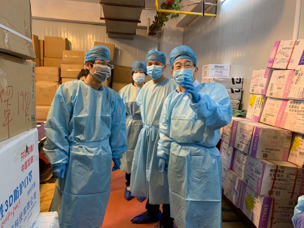 李鸿飞一行先后到学子餐厅和捐赠医疗物资仓库,查看了生活捐赠物资的使用记录和结余物资的存放情况以及医疗物资储存、管理和发放情况。