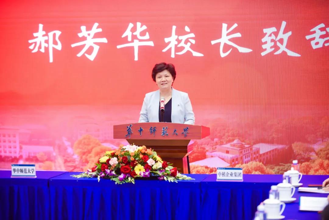 郝芳华校长在致辞中表示,今天的捐赠签约仪式开启了华中师范大学与中植集团合作发展的新篇章。在2020年武汉疫情肆虐的至暗时刻,解直锟先生领导的中植集团及时伸出援手,驰援武汉、驰援华师,彰显了大爱,提振了华师打赢疫情防控阻击战的士气,华师人一直铭记在心。此次合作体现出中植集团致力于推动我国教育事业发展的情怀和决心、以家国情怀助力教育扶贫的责任与担当。学校将以此次签约为契机,与中植集团强强联手,发挥各自优势资源,在人才培养、科学研究、社会服务、文化传承与创新等各方面开展合作,建设产教研深度融合战略合作新模式,打造“校企”深度合作新典范,共同为国家教育事业发展和现代化建设作出新的更大贡献。