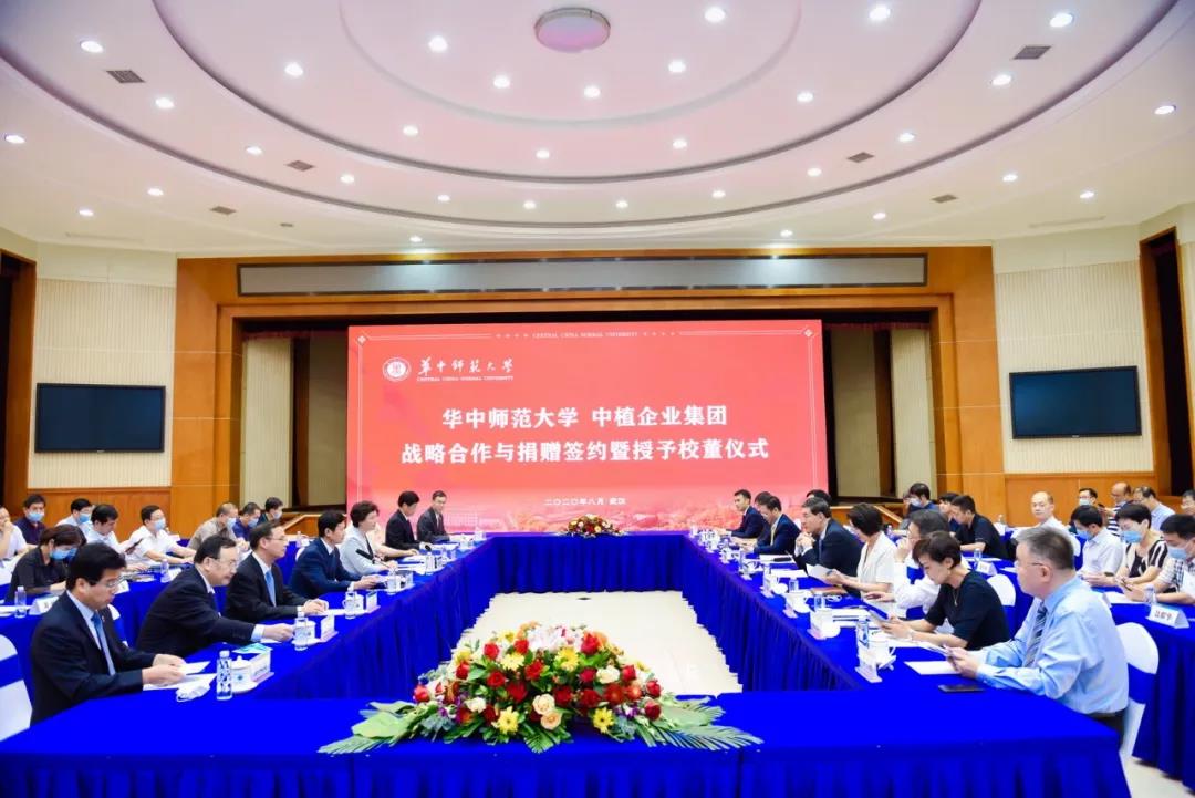 8月21日,华中师范大学、中植集团战略合作与捐赠签约仪式在我校举行。中植集团控股的上市公司美吉姆向我校基金会捐赠1000万元人民币,用于支持学校早期教育学科建设、人才培养、科教融合、师资培训体系认证、教育信息化等方面的工作,并设立奖学金。中植集团还特别为华师120周年校庆捐赠了校庆专用服装。