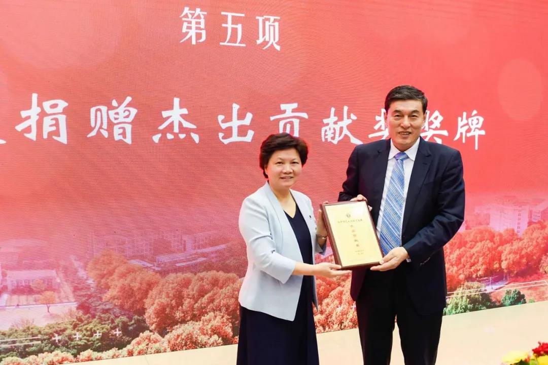 郝芳华为解直锟颁发捐赠杰出贡献奖奖牌